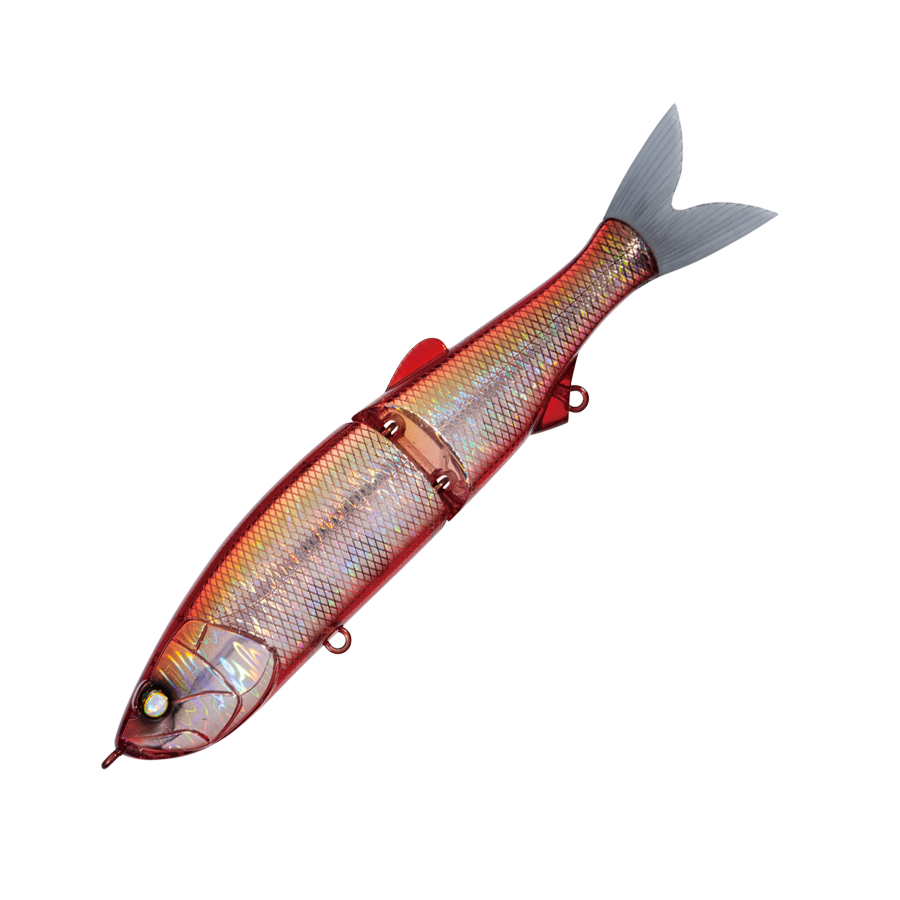 WHIPLASH FACTORY's first jointed lipless minnow. It swims seductively in a wide slalom with a short travel distance during retrieval, and its movement is also transmitted to your hand. With a light twitch, it darts left and right, and with fine continuous operation, it develops a writhing action under the water surface, driving the target crazy. The body thickness is set to 1.5 mm, assuming a strong target with teeth and jaws. The hook is one size larger than the general model of the same type, and the hook-up rate is also improved.